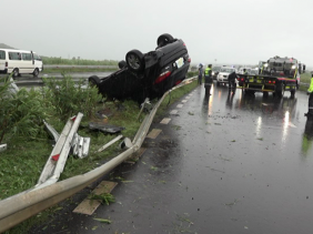 Le taxi a quitté la route avant de faire plusieurs tonneaux sur l’autoroute de Terre-Rouge-Verdun, à proximité du rond-point de Bois-Pignolet.