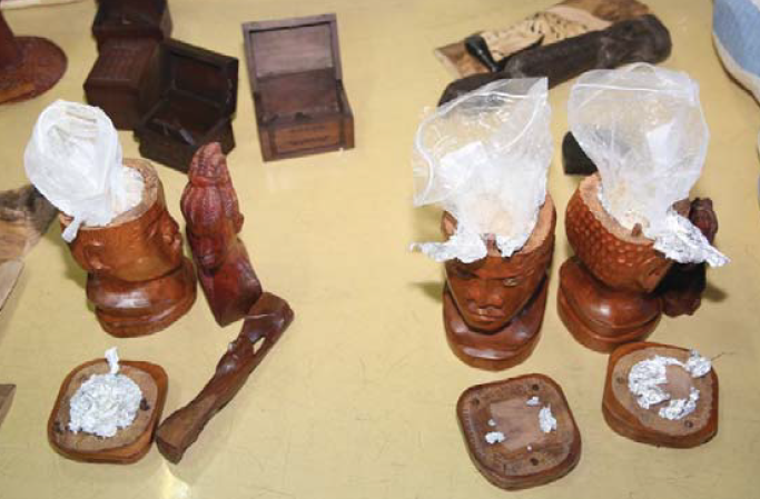 Les images du scanner de la douane ont révélé la présence de la drogue dissimulée à l’intérieur des statuettes et des tables.
